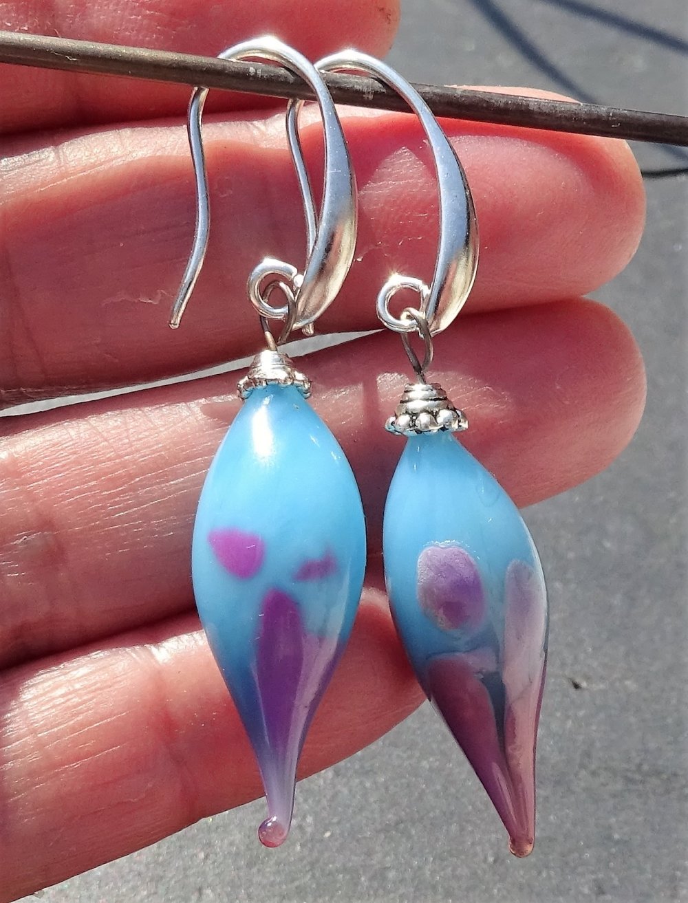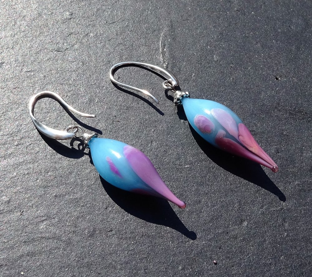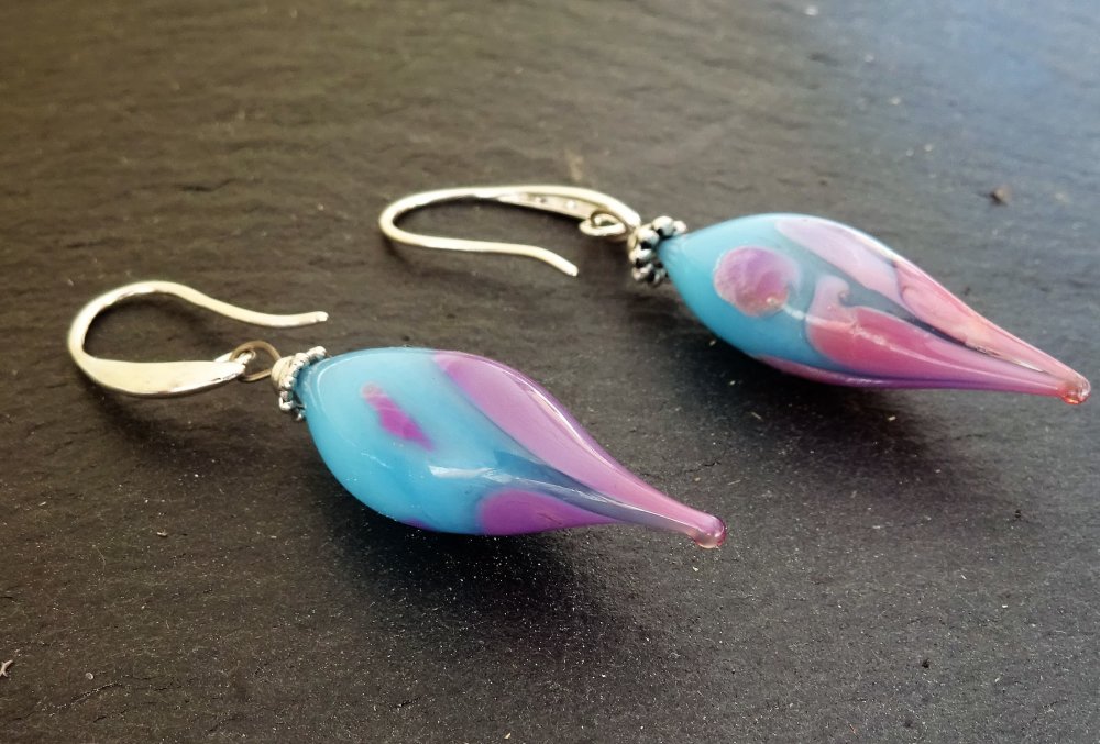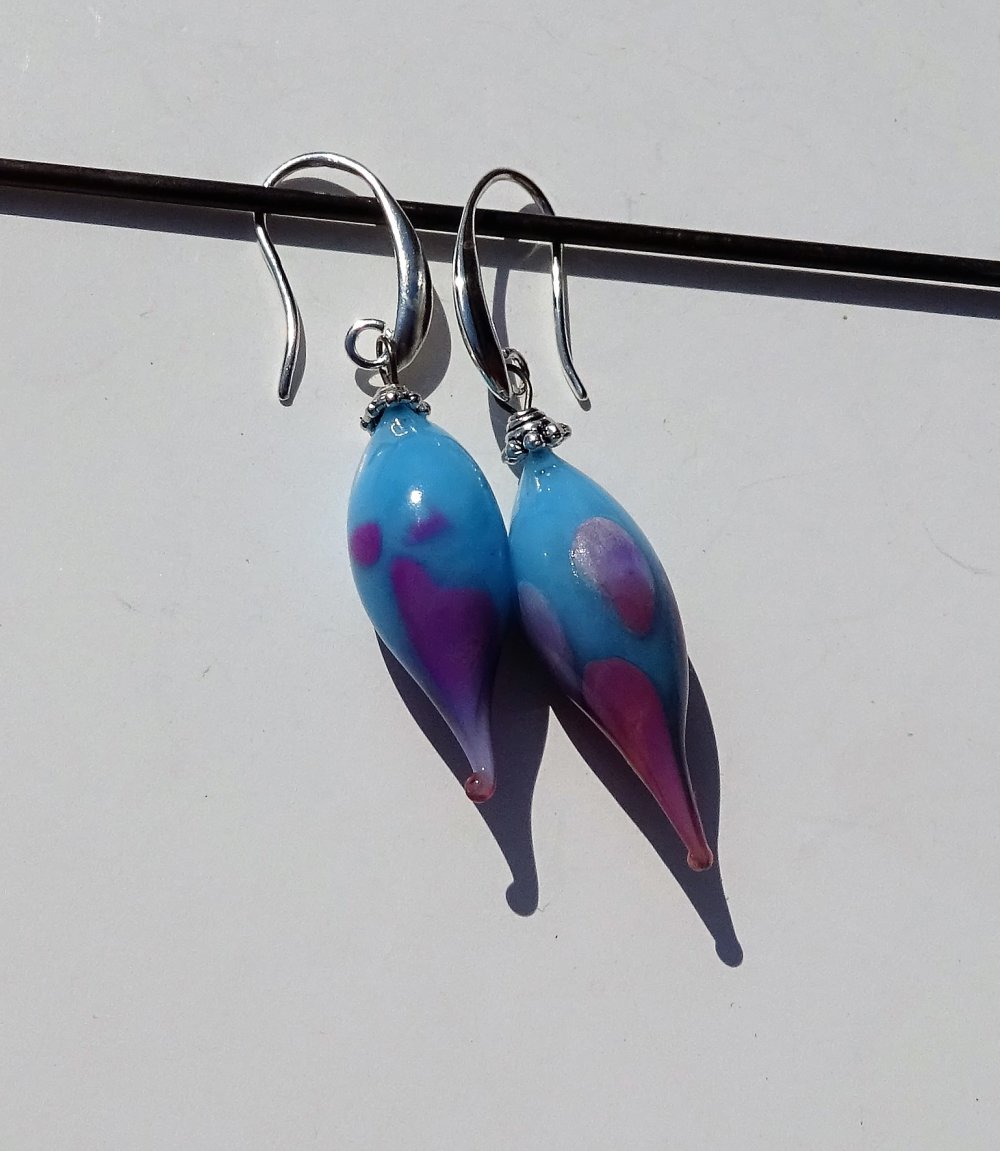 boucles d'oreille ornés de perles filées à la main par la créatrice