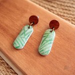 Conçues & entièrement réalisées à la main en pâte polymère, ces boucles d'oreille sont recouverte d'une résine qui les rendent très résistants et imperméables. La base d'oreille est en bois style wengé et le clou en métal argenté. De nombreuses techniques sont utilisées.