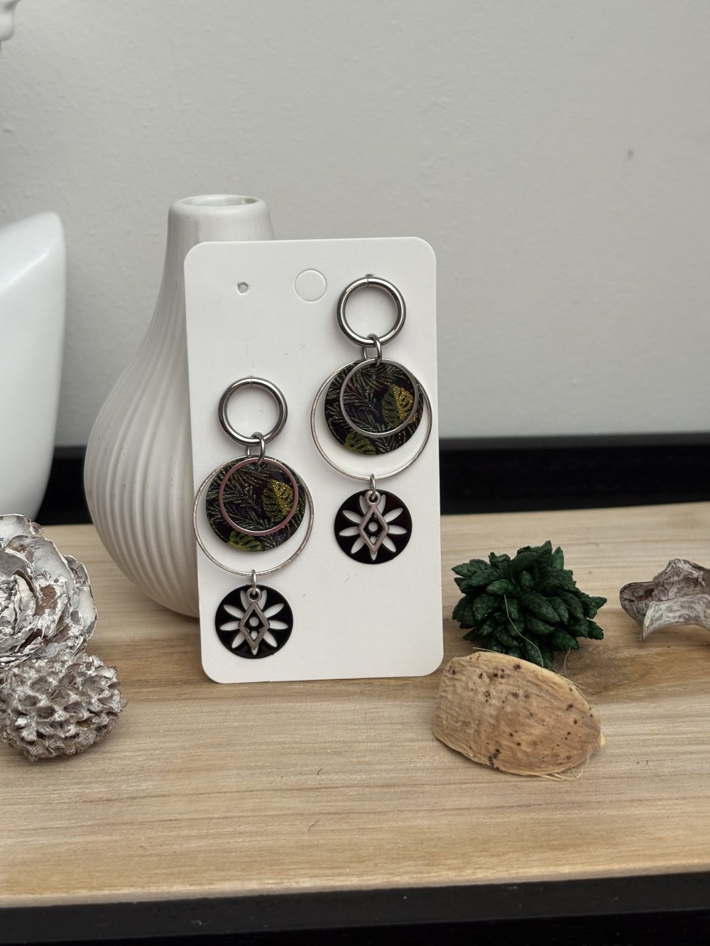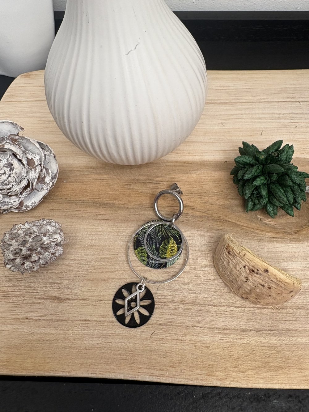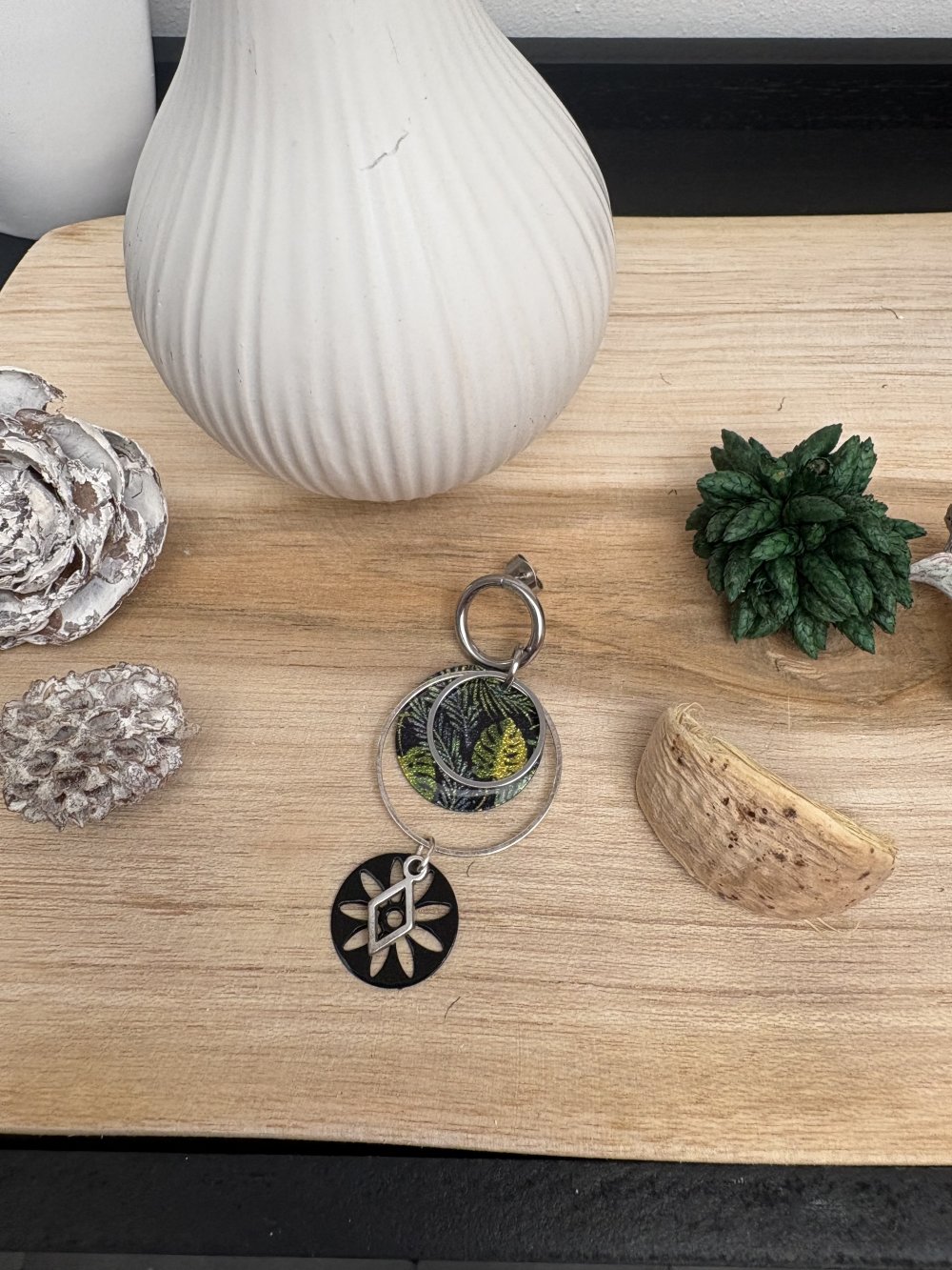 - 1 anneau rond de 25 mm argent + pendentif peint et résiné