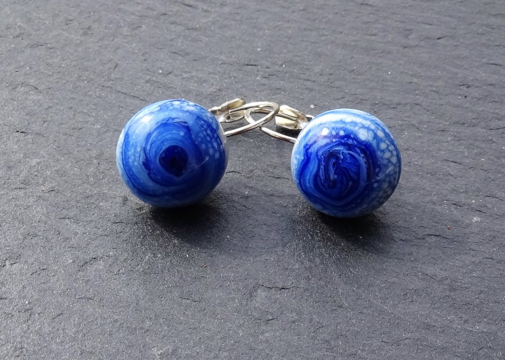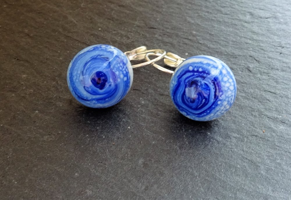 pendants d'oreille ornés de perles filées à la main par la créatrice