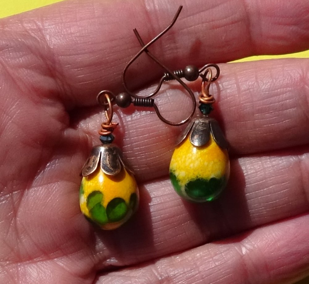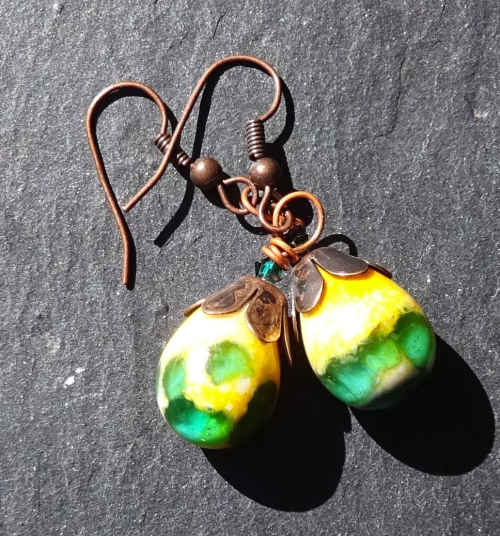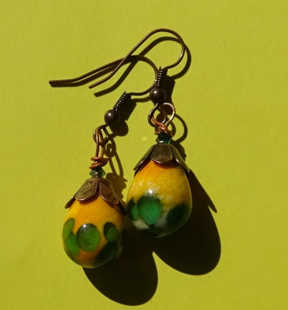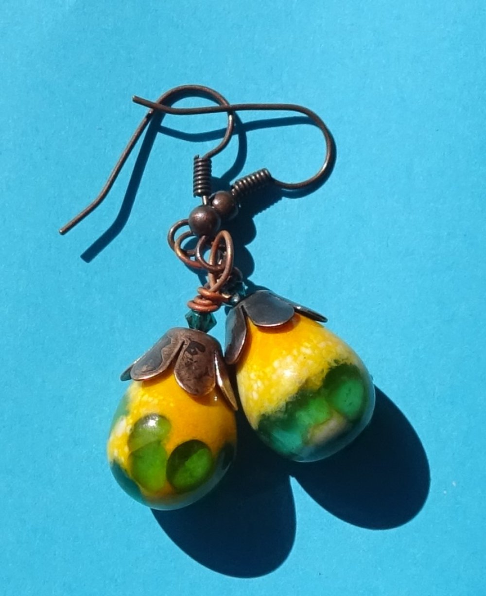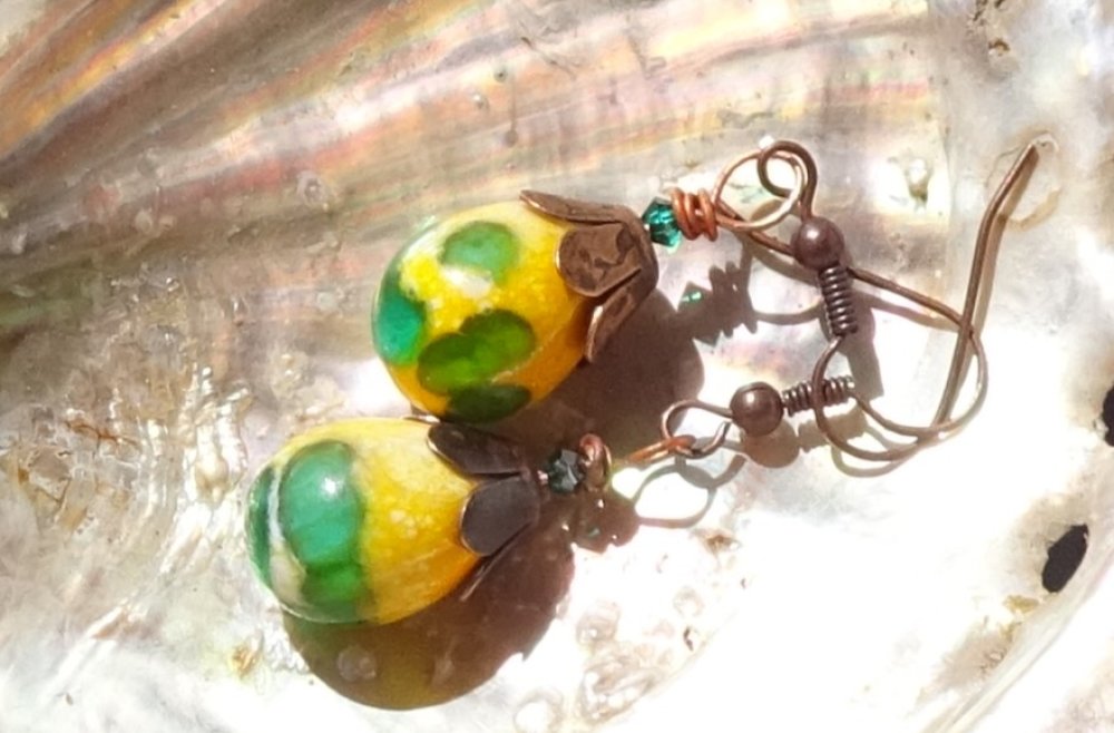 boucles d'oreille ornés de perles filées à la main par la créatrice