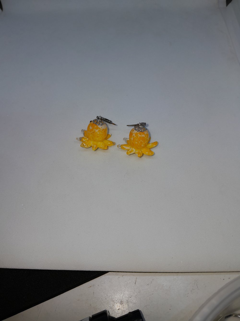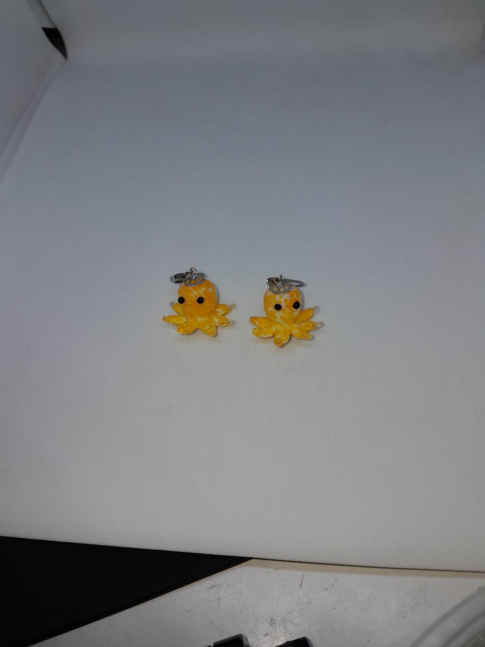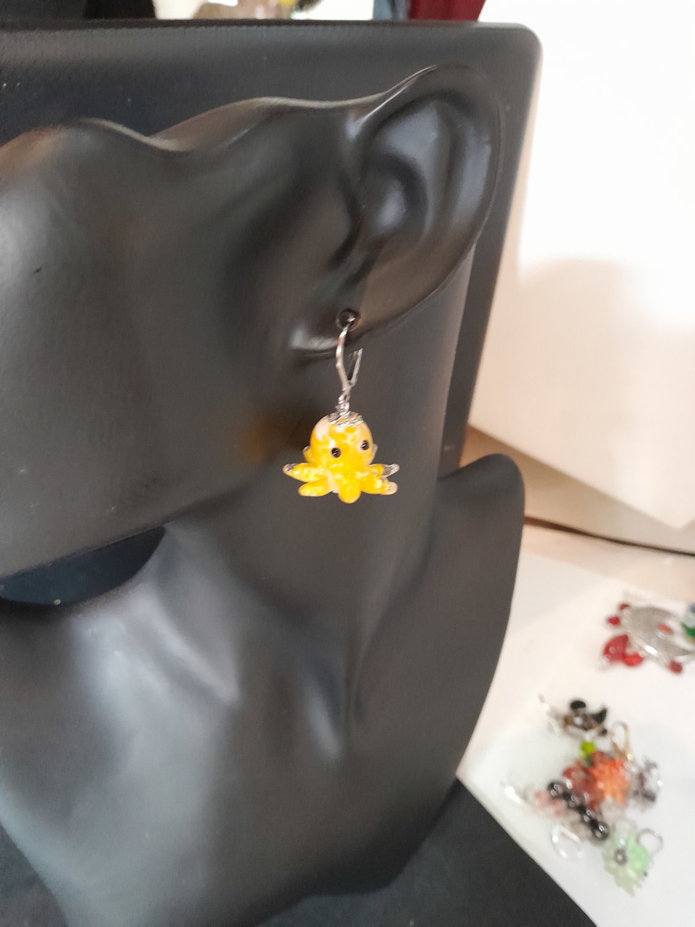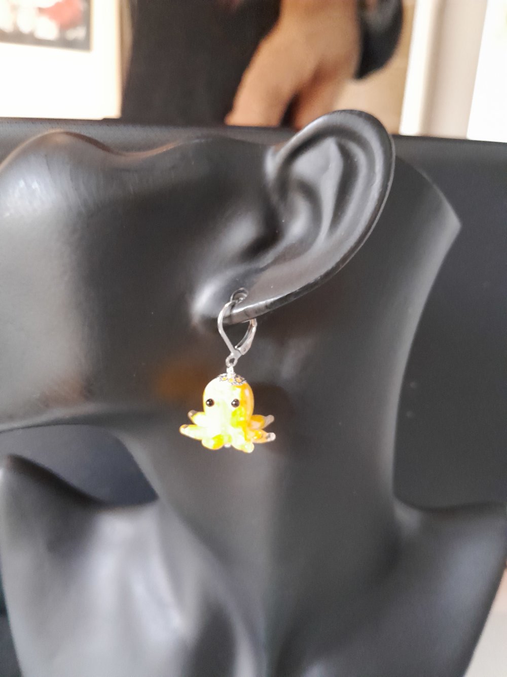 Jolies et rigolotes boucles d'oreille en forme de poulpes en verre soufflé, faites à la main