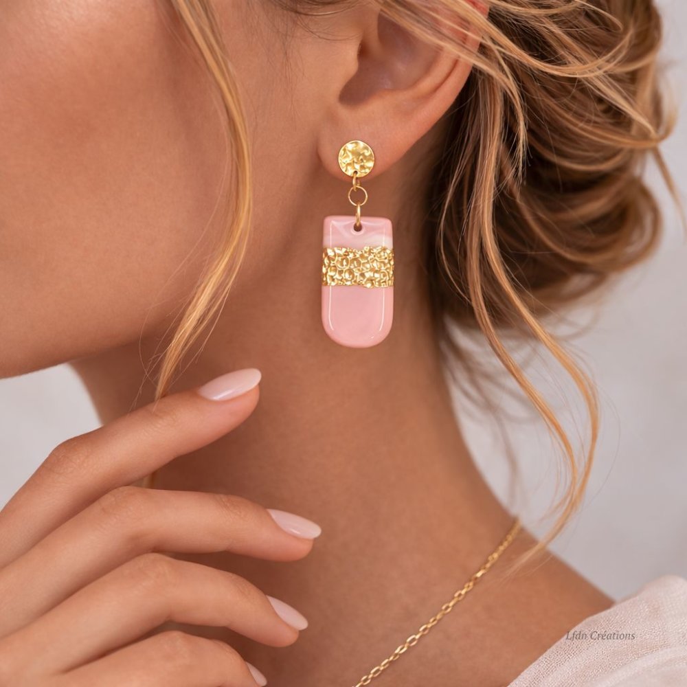 boucles d'oreille moderne rose et or polymère