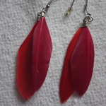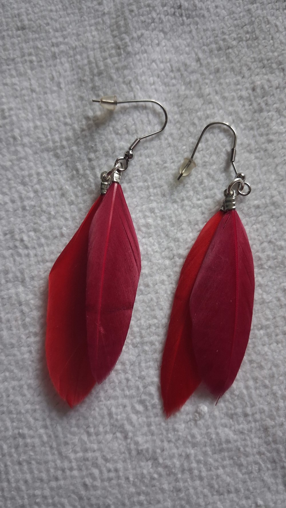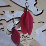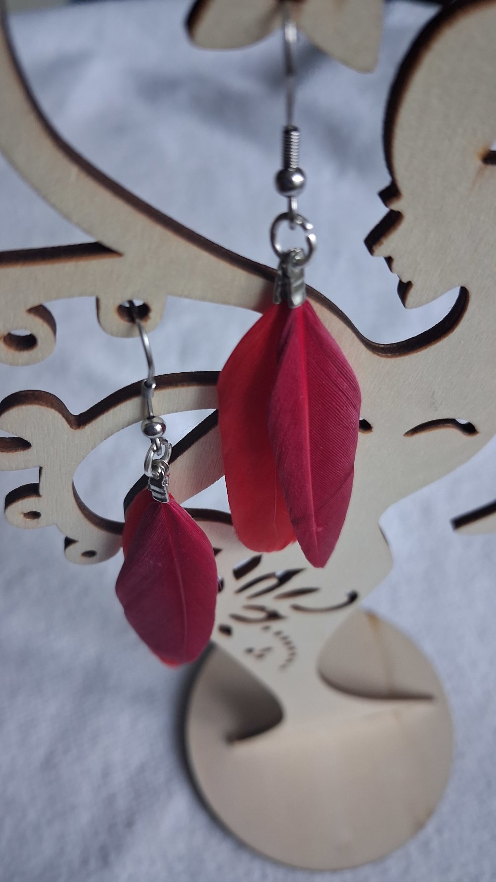 Boucles d'oreilles 2 plumes rouges er bordeaux