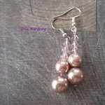 Trio de petites perles en verre rose transparentes et deux perles une en verre, l'autre en métal rose poudré