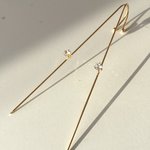 Boucles d'oreilles, très originales, pouvant être une alternative aux piercings, composées d'une très fine tige en métal dorée ornée en son centre par un beau strass blanc serti.