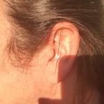 La forme canne de la boucle permet de positionner la partie courbe sur le haut du lobe tout en glissant la tige dans le trou de votre oreille.