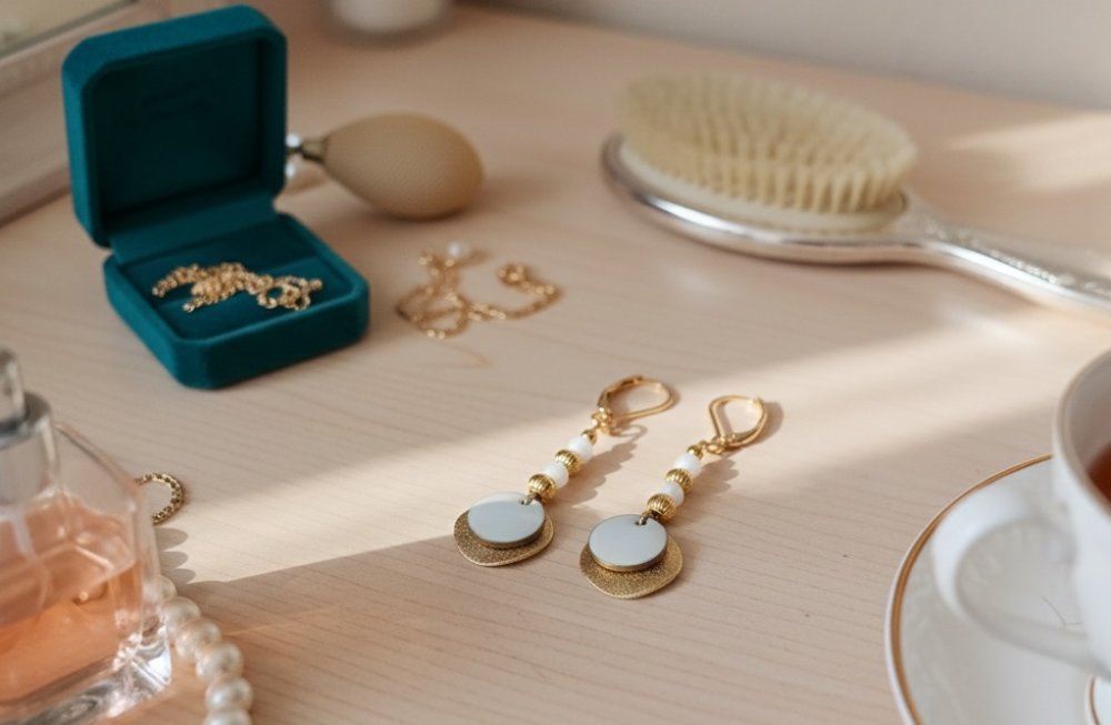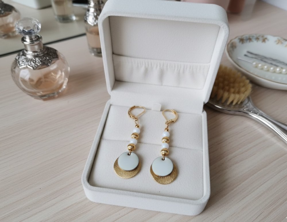 Boucles d'oreilles blanche et dorée