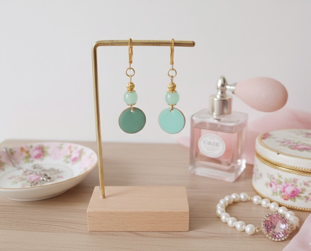 Boucles d'oreilles acier inoxydable doré et sequin émail