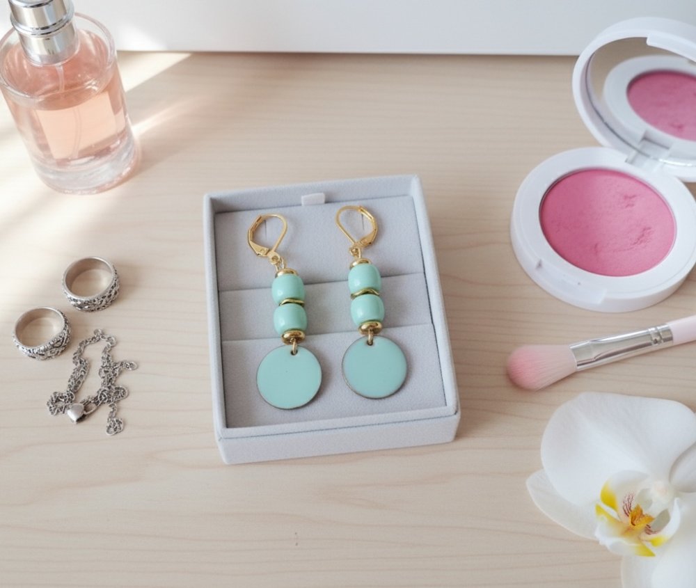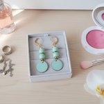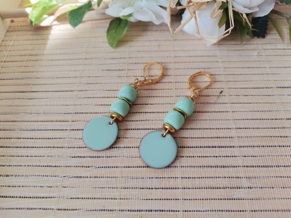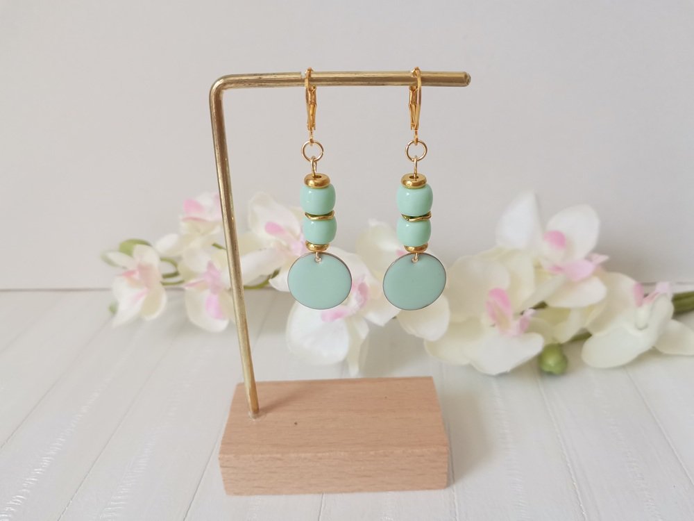 Boucles d'oreilles acier inoxydable dorées et sequin émail