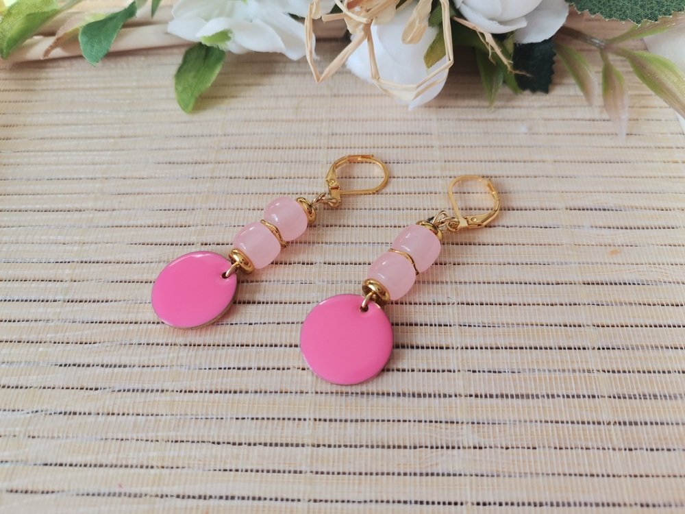Boucles d'oreilles acier inoxydable dorées et sequin émail