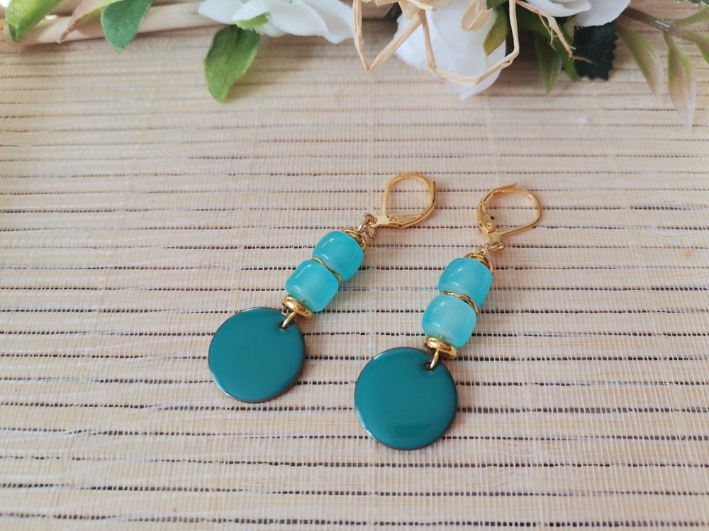 Boucles d'oreilles acier inoxydable dorées et sequin émail