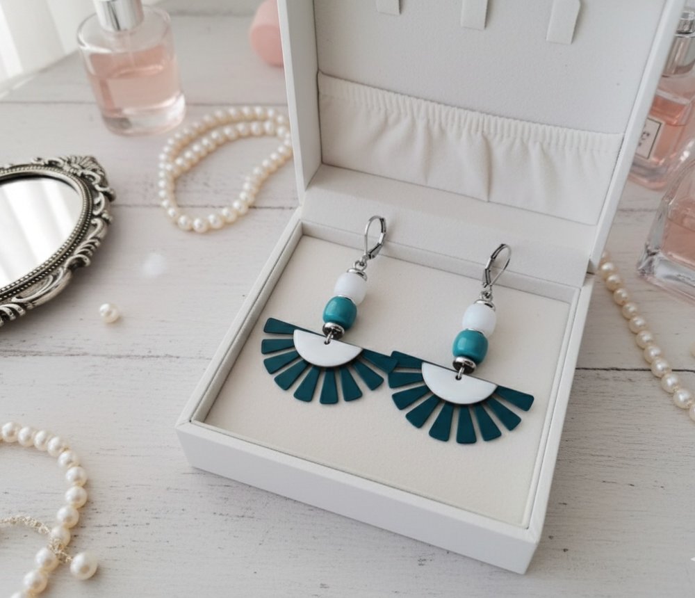 Boucles d'oreilles turquoise, blanc et argent mat