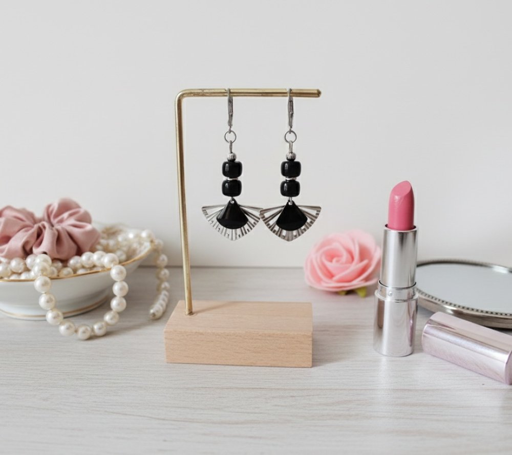Boucles d'oreilles acier inoxydable et pendentifs éventail