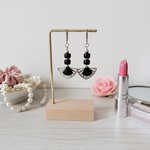 Boucles d'oreilles en acier inoxydable (dormeuse à levier, tige et anneaux) avec pendentifs en métal et émail en forme d'éventail , perles colonne de 8 mm
