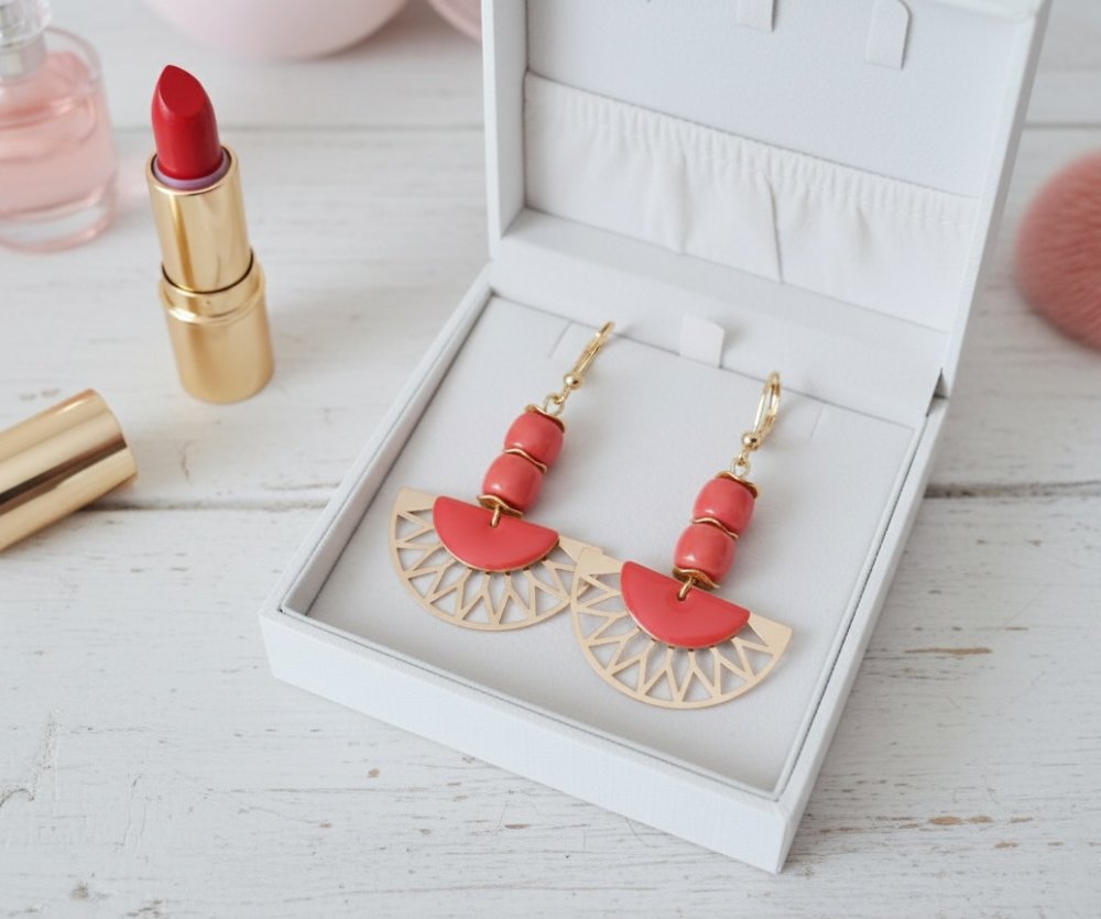 Boucles d'oreilles acier inoxydable et corail