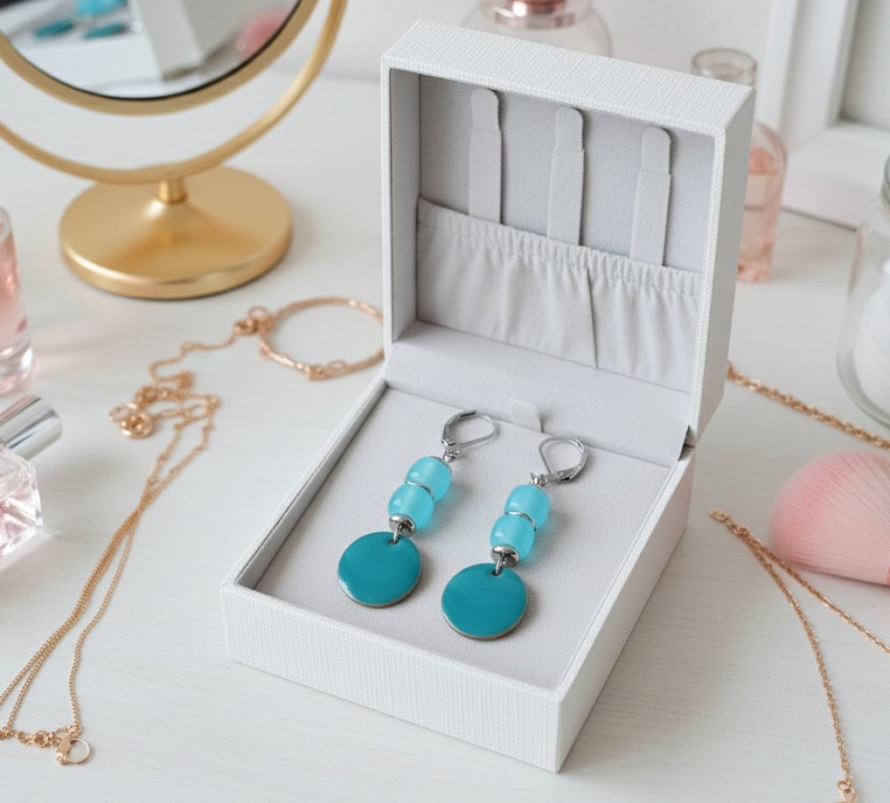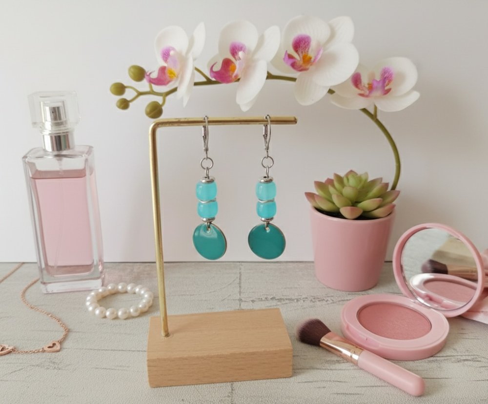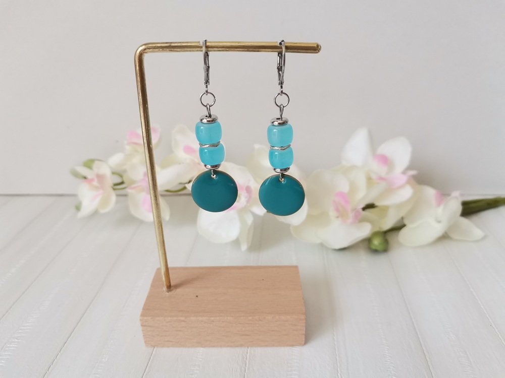 Les tiges, anneaux, perles intercalaires rondelles et dormeuses à levier sont en acier inoxydable
