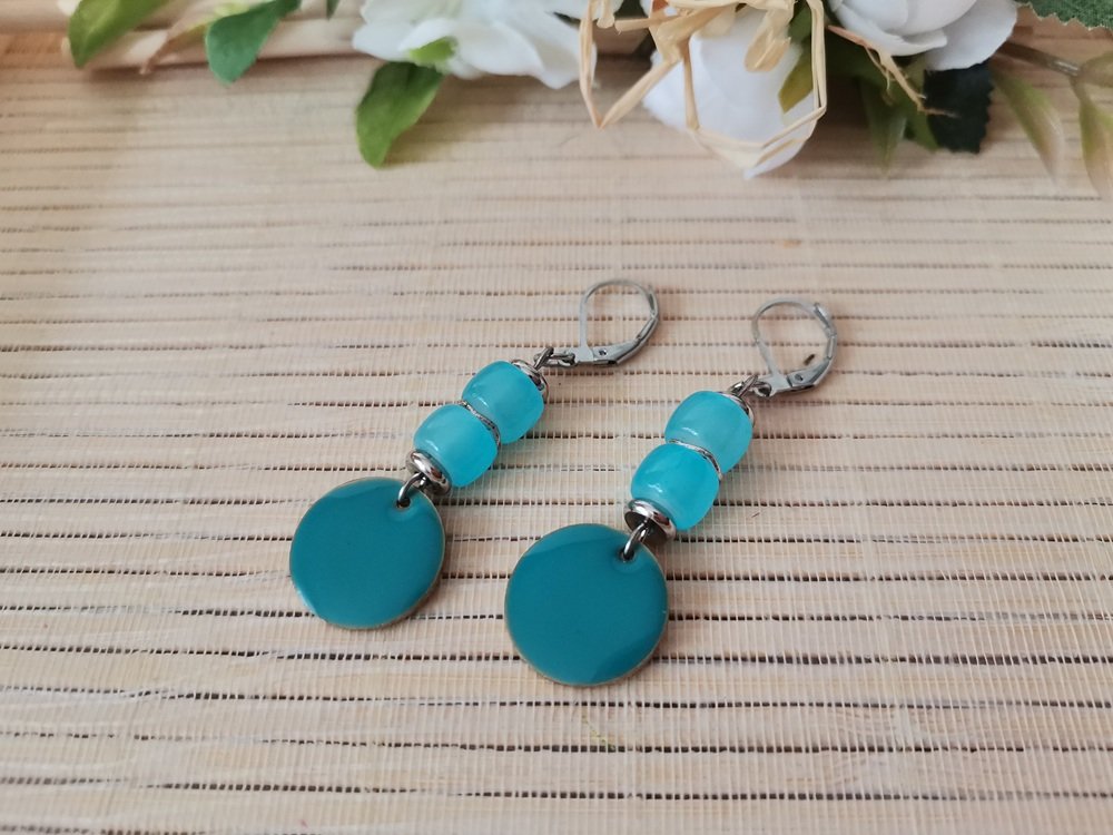 Elles sont composées de perles en verre colonne de 8 mm et d'un sequin émail de 15 mm
