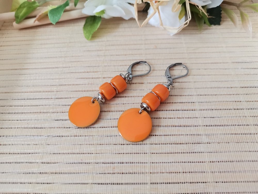 Elles sont composées de perles en verre colonne de 8 mm et d'un sequin émail de 15 mm