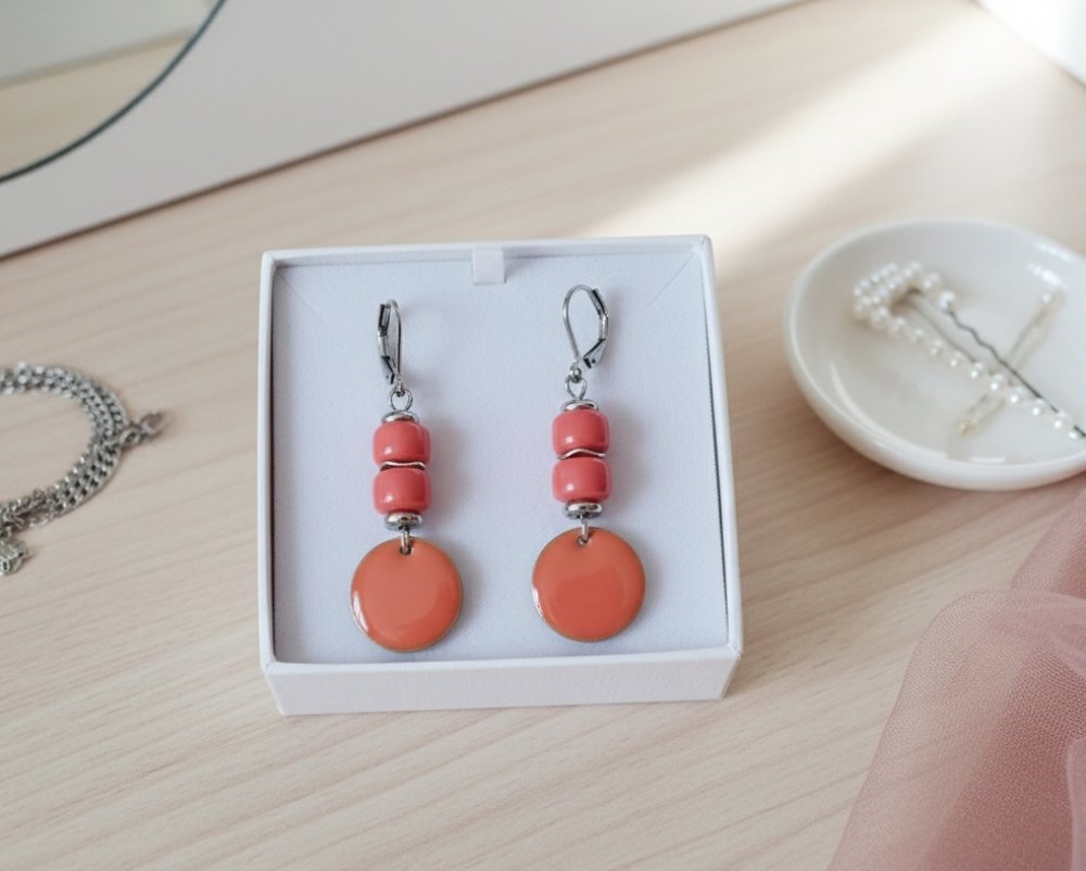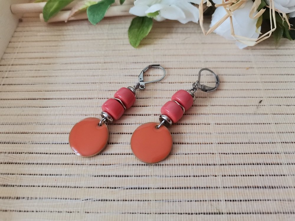 Elles sont composées de perles en verre colonne de 8 mm et d'un sequin émail de 15 mm