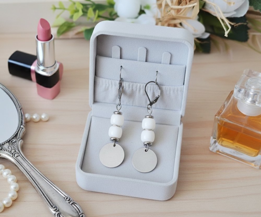Les dormeuses, perles rondelles intercalaires, anneaux et clous sont en acier inoxydable et donc anti allergie.