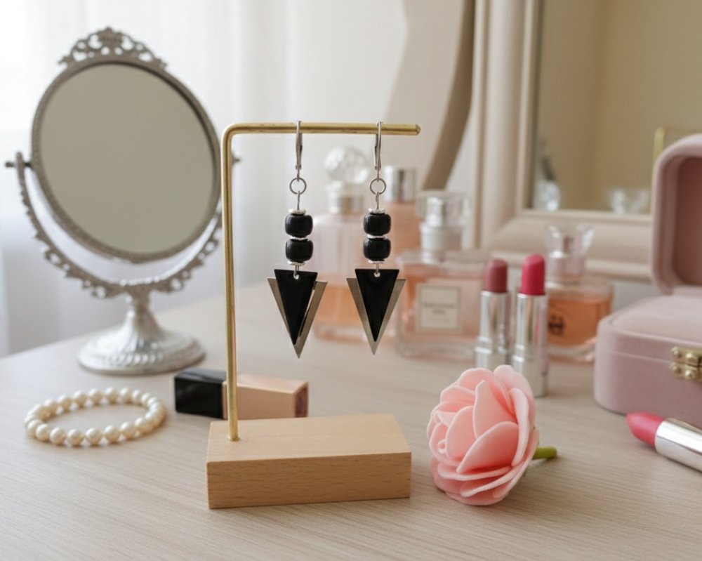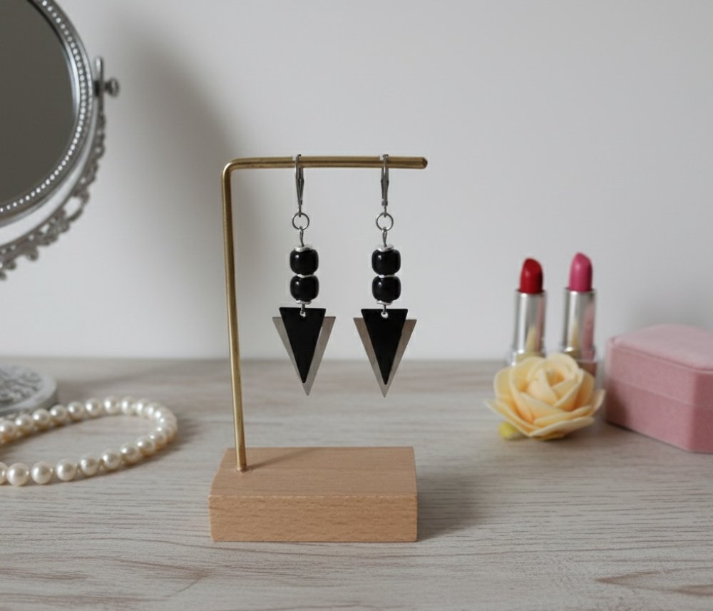 Boucles d'oreilles acier inoxydable pendentif triangle métal et émail