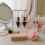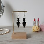 Boucles d'oreilles montées sur dormeuses à levier, avec perles en verre colonne et pendentifs triangle métal et émail