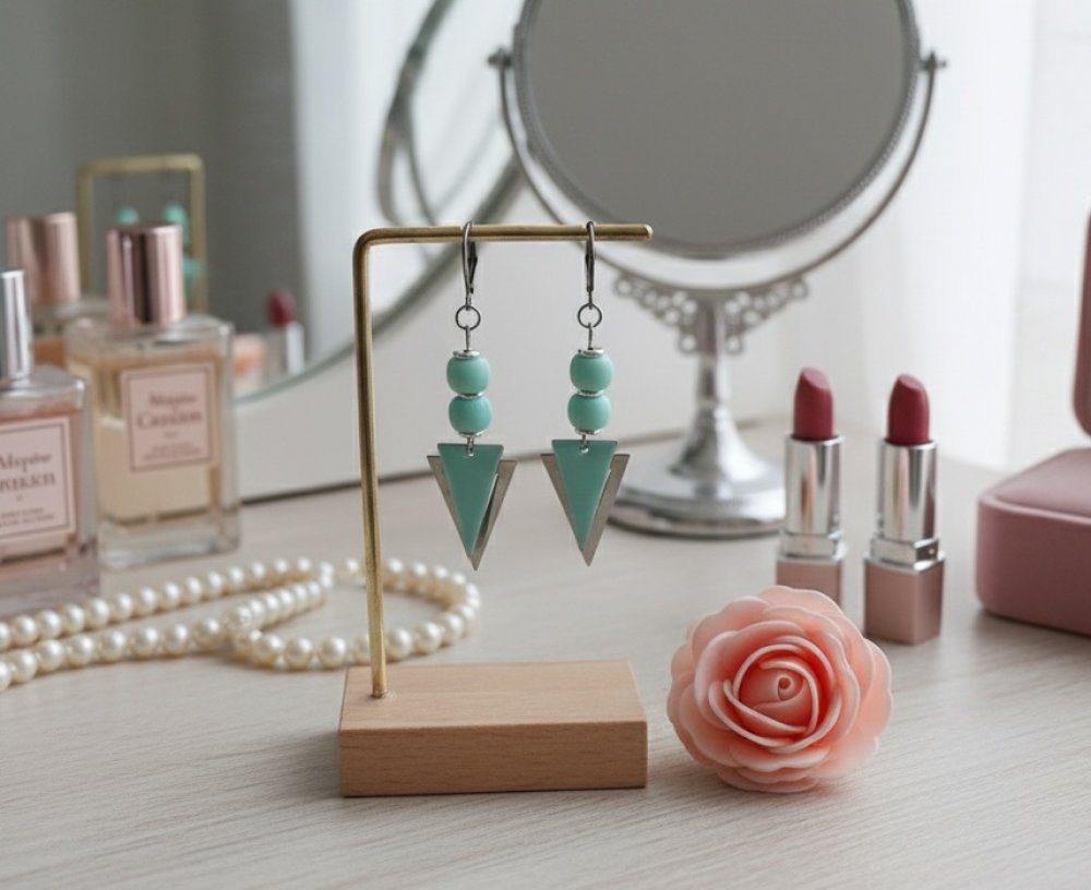 Boucles d'oreilles acier inoxydable pendentif triangle métal et émail