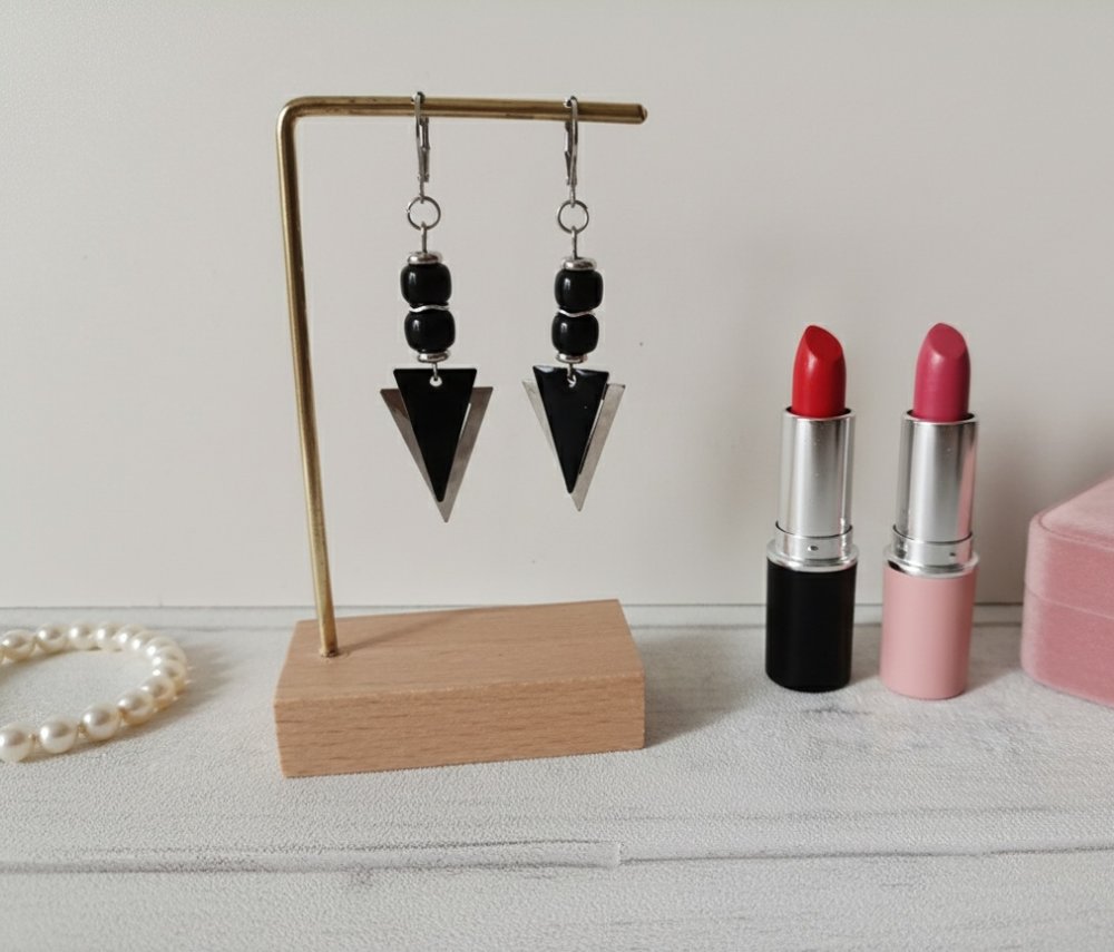 Boucles d'oreilles acier inoxydable pendentif triangle métal et émail