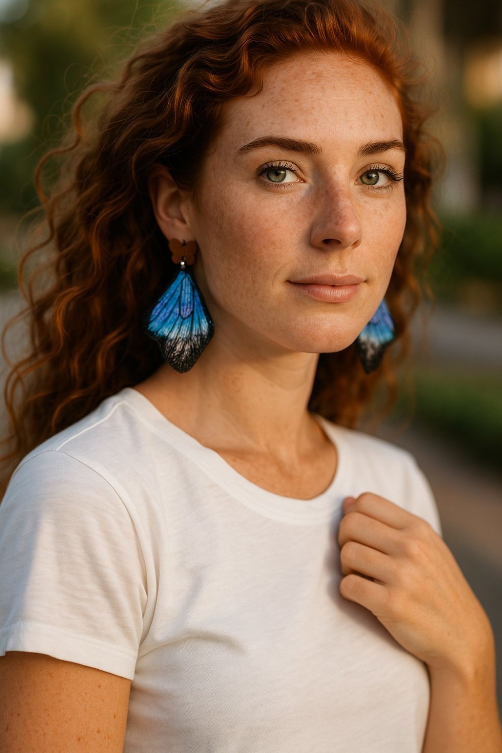 les boucles sont en bois avec forme de papillons avec une tige clou.