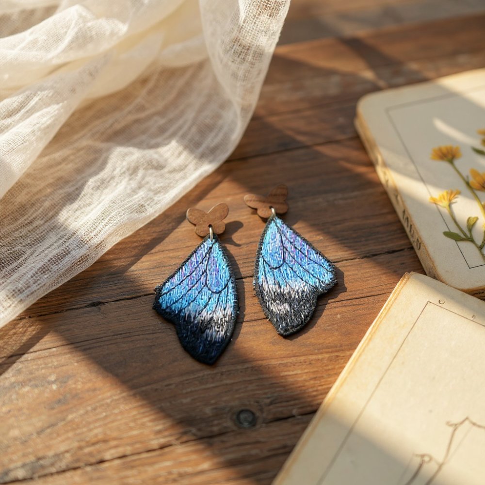 prenez votre envol avec cette paire de boucles d'oreilles totalement brodée en forme d'ailes de papillons.