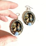 Boucles d’oreilles entièrement réalisées à la main . Médaillons en bois découpés au laser par mes soins puis recouverts d’une couche de résine apportant aux boucles d’oreilles une belle brillance ainsi qu’une bonne solidité. Les crochets sont couleur argent et les boucles d’oreilles mesurent 4,5 cm de haut par 3 cm de large . Pièce unique , livraison gratuite.