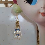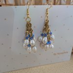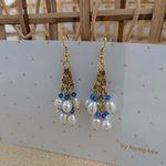 Matériaux : 16 perles d’eau douce, 16 perles en cristal bleus, apprêts dorés en acier inoxydable