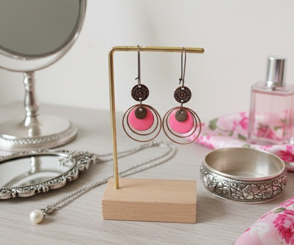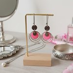 Boucles d'oreilles anneaux cuivre rouge et sequin émail rond