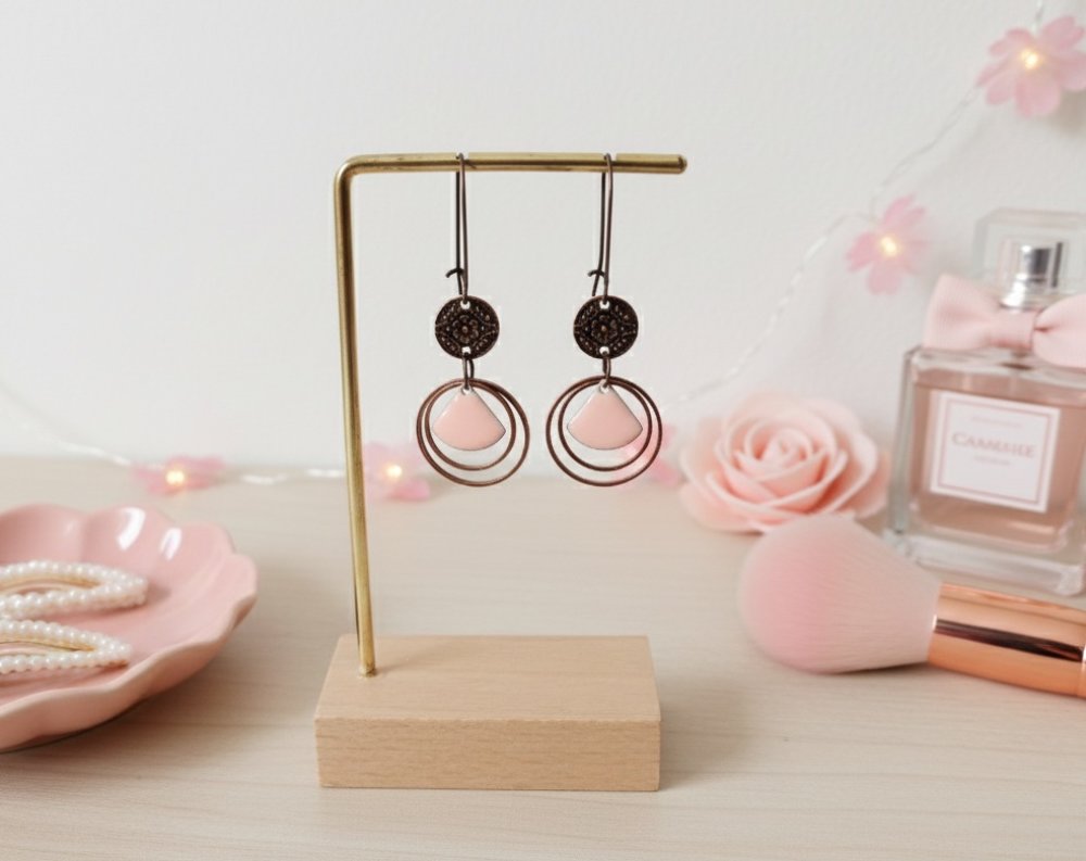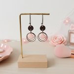 Boucles d'oreilles anneaux cuivre rouge et sequin émail