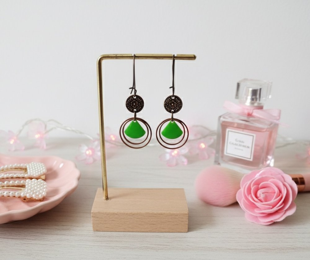 Boucles d'oreilles anneaux cuivre rouge et sequin émail