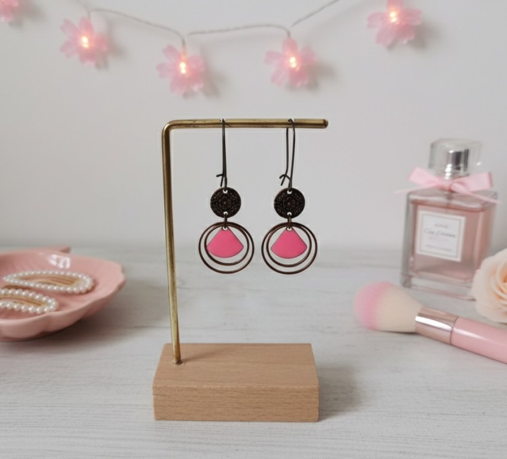 Boucles d'oreilles anneaux cuivre rouge et sequin émail