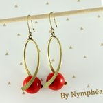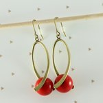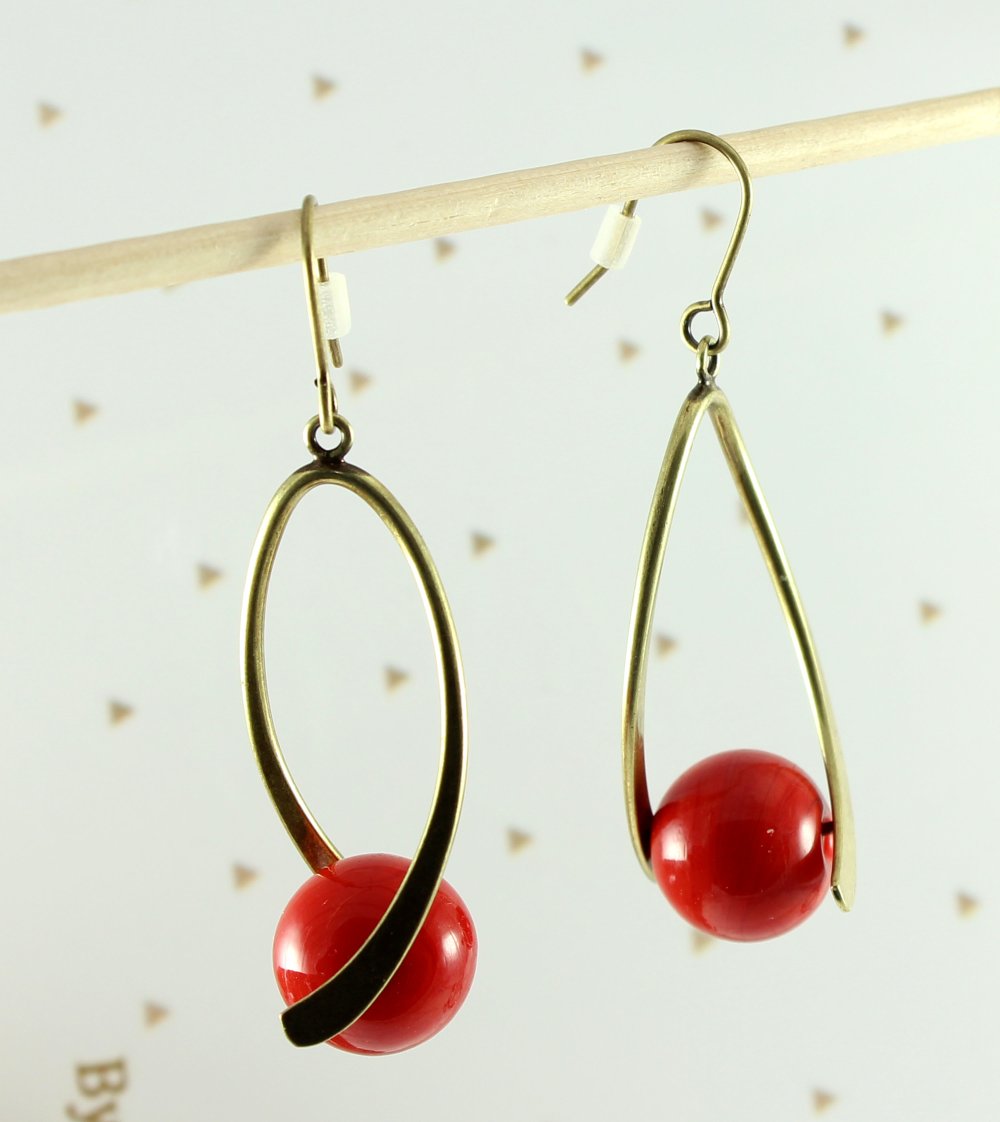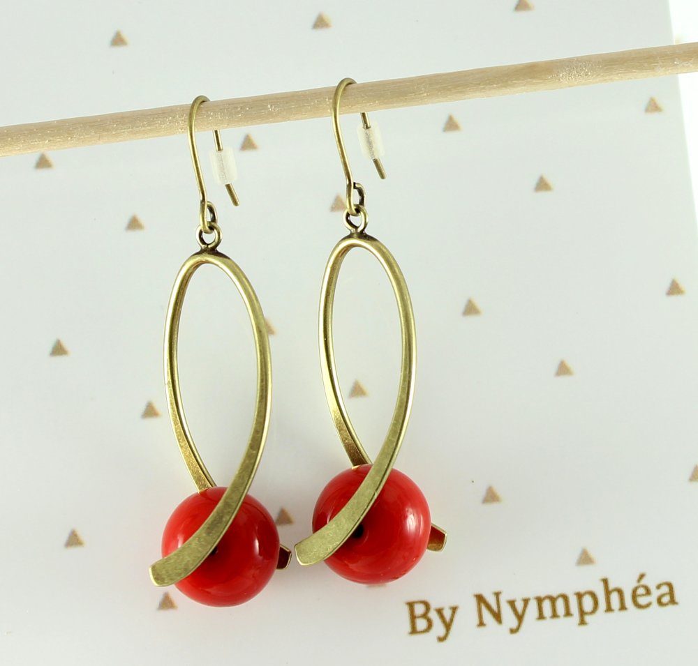 Boucles d'oreilles pendantes laiton perles rouges en verre boucles d'oreilles tordues anneau tordu vague ByNymphéa