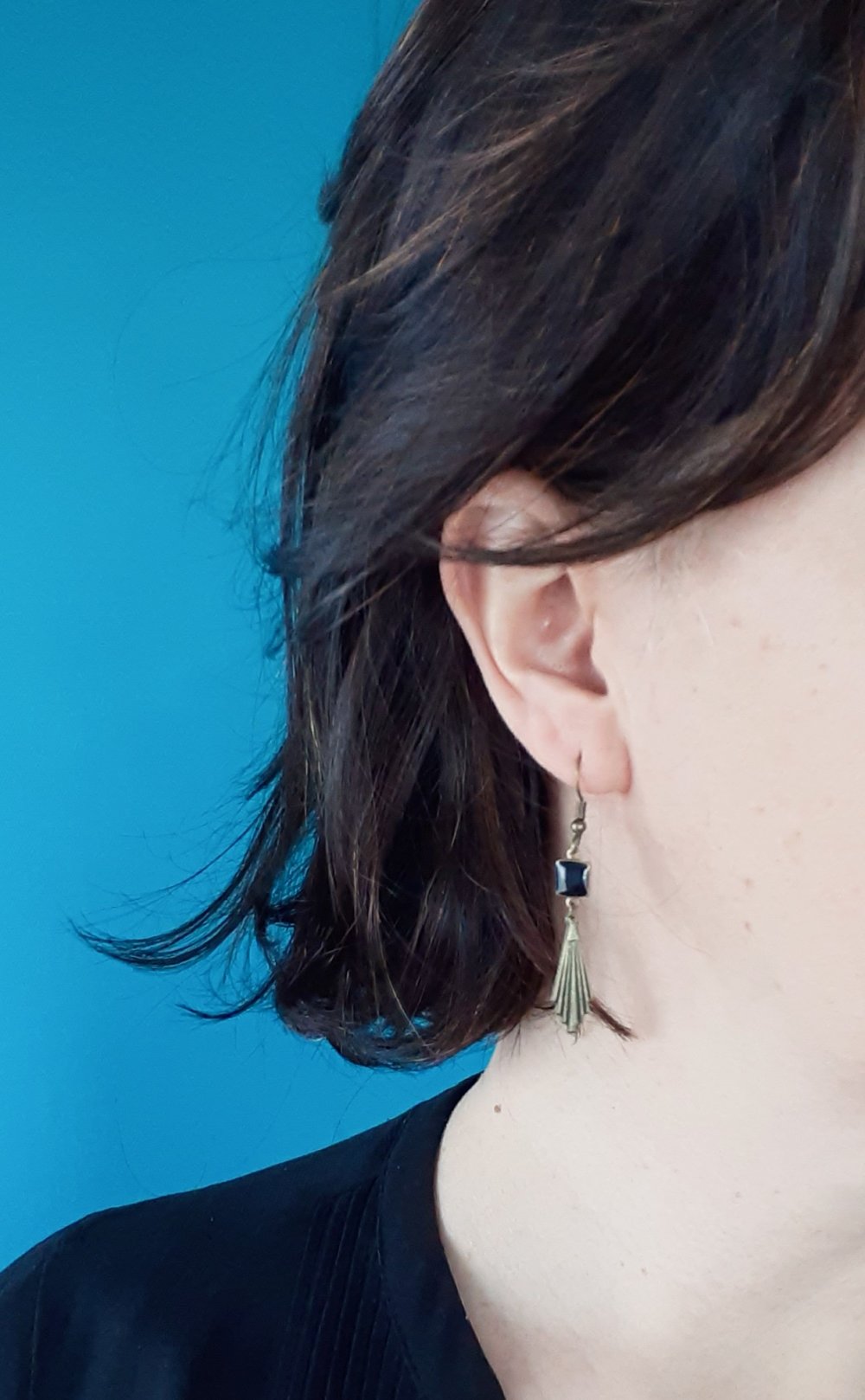 Boucles d'oreilles très originales et élégantes, de style Art Déco à porter sans modération. Légères et très agréables à porter.