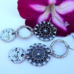 Boucles d'oreilles asymétriques en métal argenté avec anneau rond de 14,5mm,estampe filigranée de 18mm,sequin de 8mm