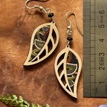 Les boucles mesurent environ 6 cm de hauteur et sont très légères, environ 1,2 g.  Les crochets sont hypoallergéniques en acier inoxydable. Bien que le bois soit vitrifié, les bijoux doivent être protégés de tout contact avec de l’eau.