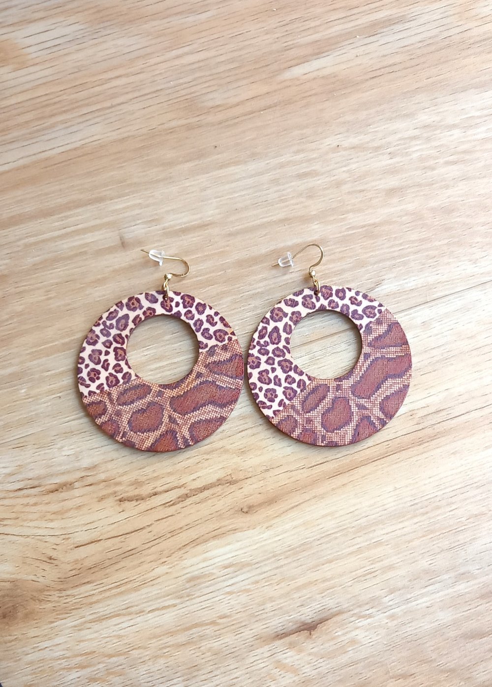 Grandes boucles d'oreilles bois imprimé léopard, marron
