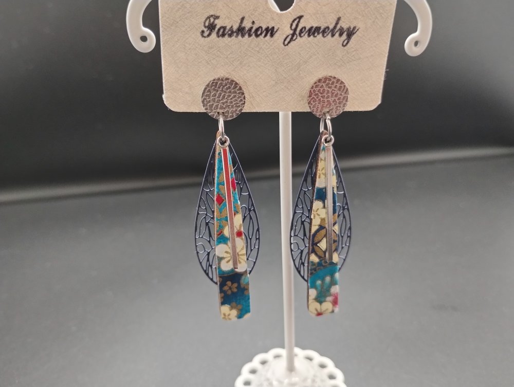 boucles d'oreilles bois papier