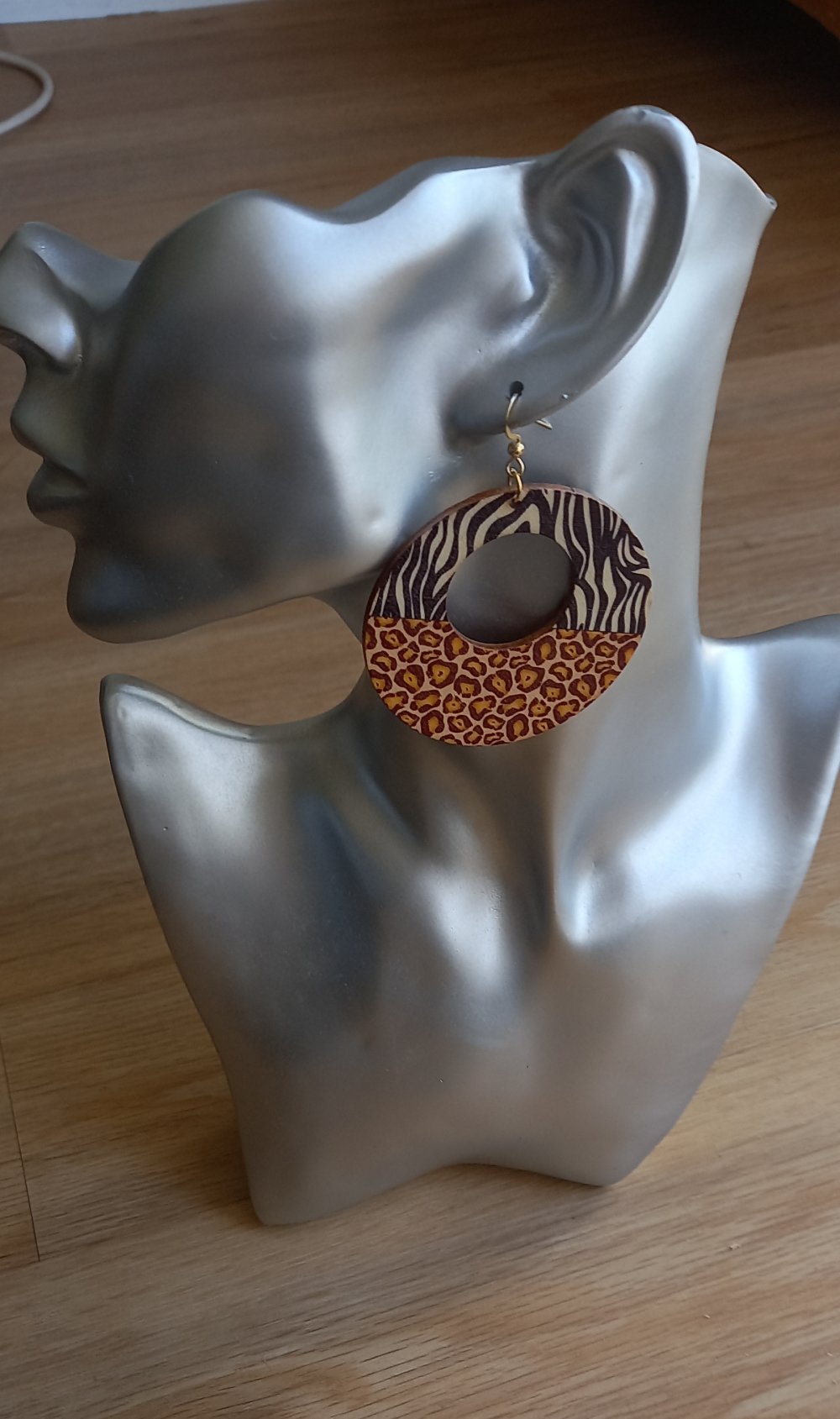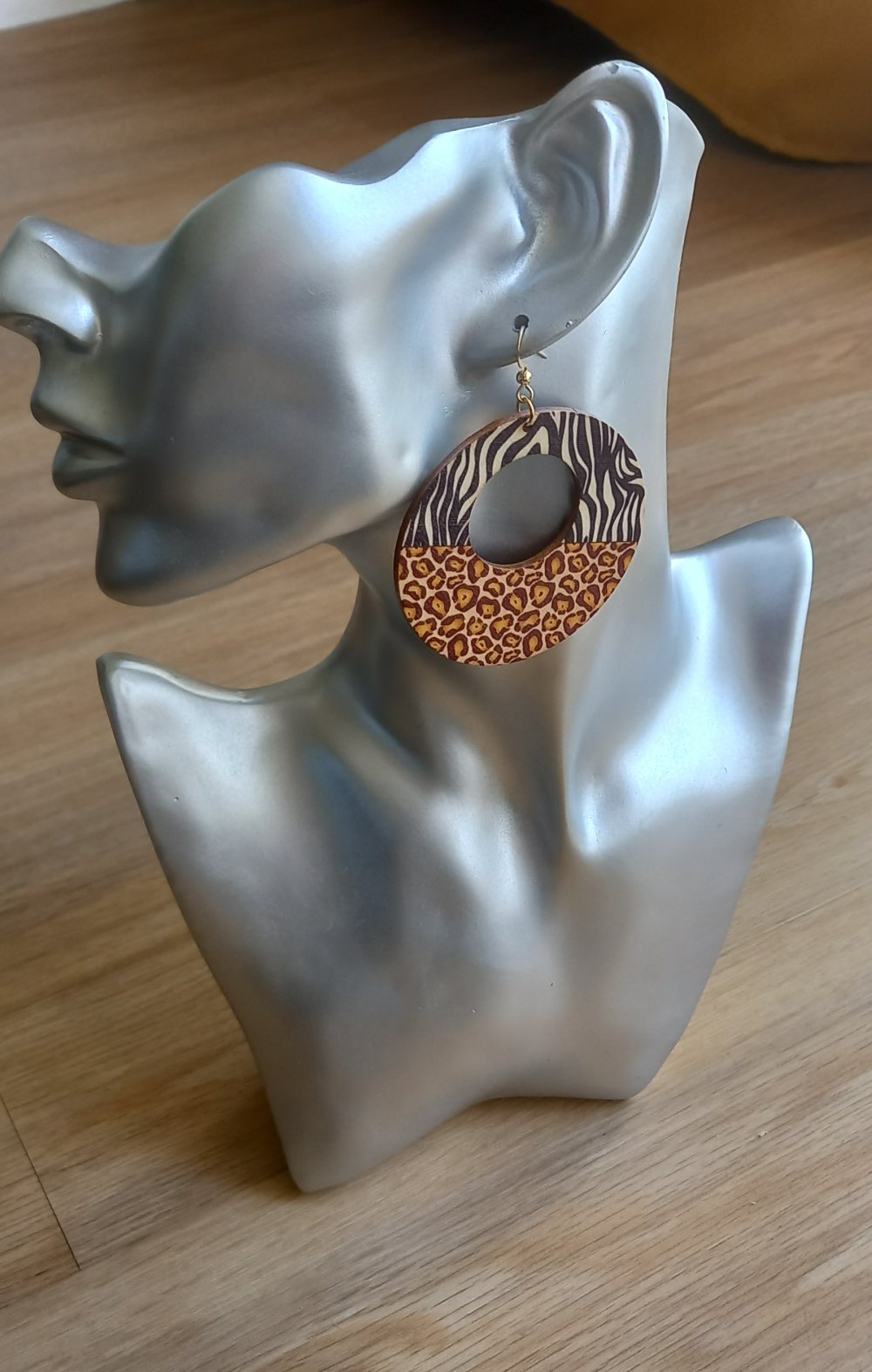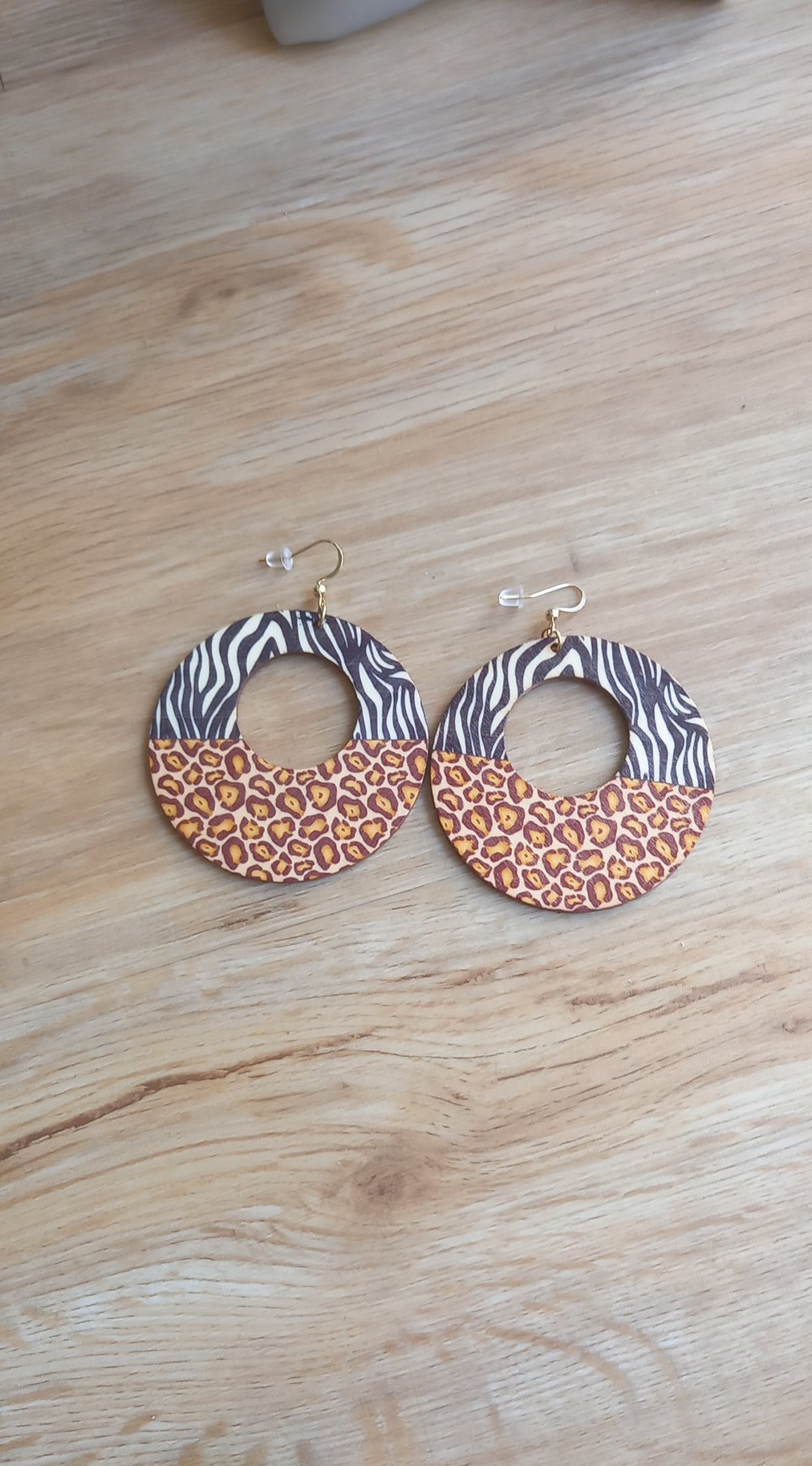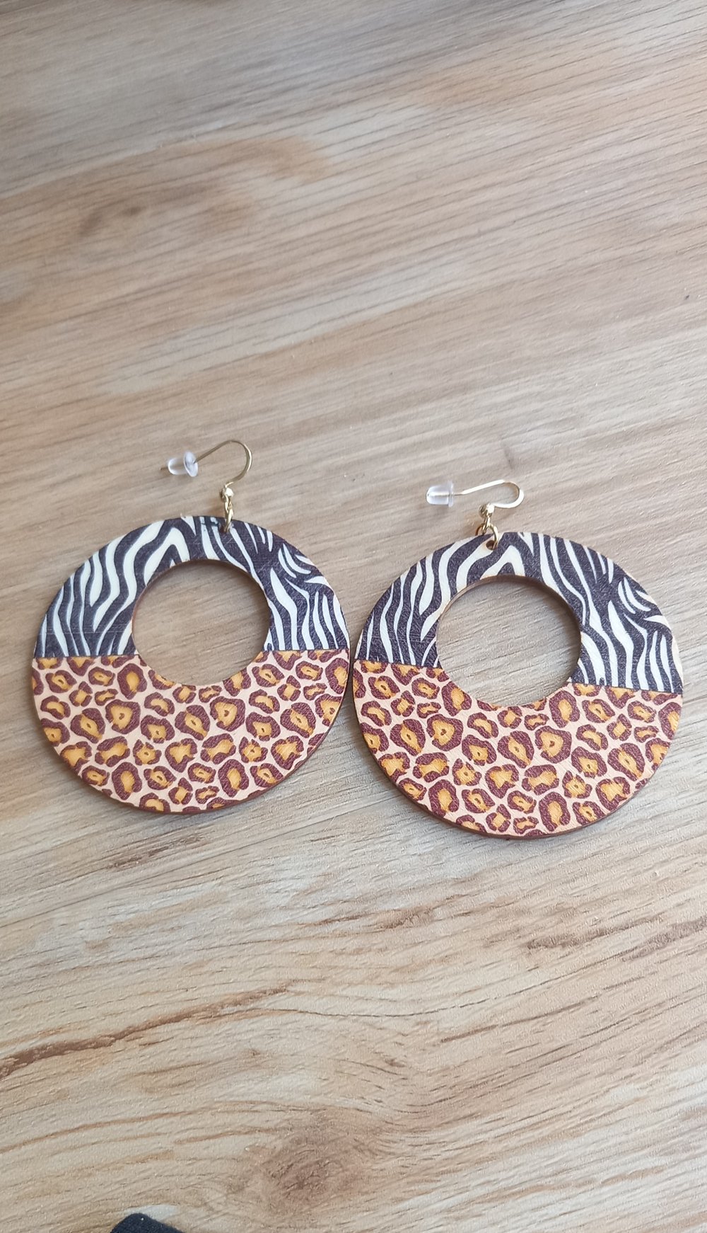 Grandes boucles d'oreilles bois imprimé zébre-léopard