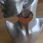 Grande boucles d'oreilles en bois de coco, très très légères et crochets d'oreille en acier inoxydable. Même imprimé recto verso. Colori imprimé zèbre-léopard. Elles existent dans d'autres coloris (Voir modèles sur photo).