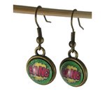 Boucles d'oreilles bronze et cabochon rouge, vert et jaune "Bang"