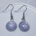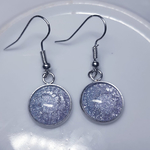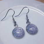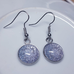 Boucles d'oreilles fait-main à cabochon de verre gris pailleté et acier inoxydable argenté - Idée cadeau femme - Cadeaux de Noël
