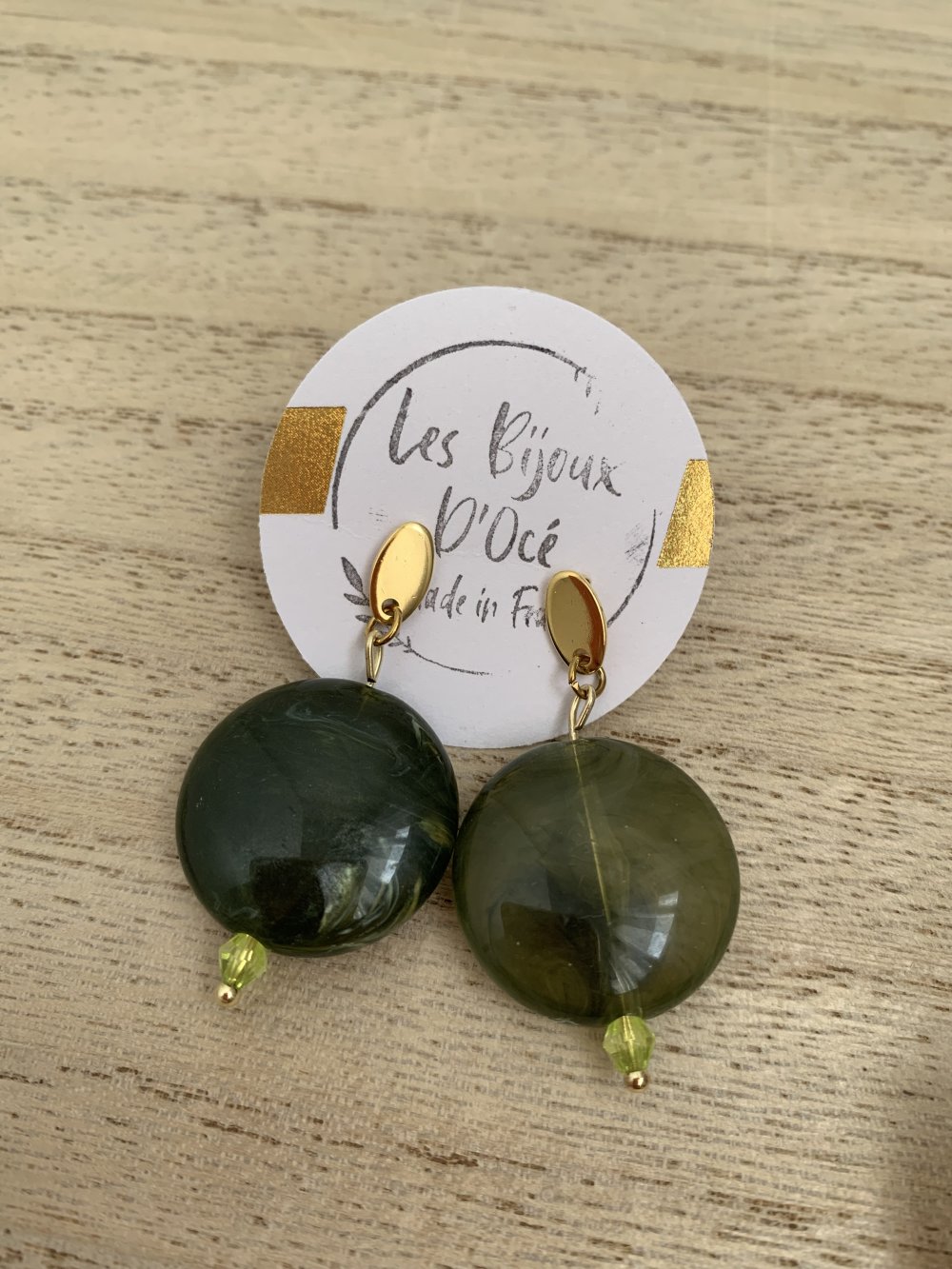 Boucles d’oreilles en acier inoxydable et perle acétate. Modèle unique !