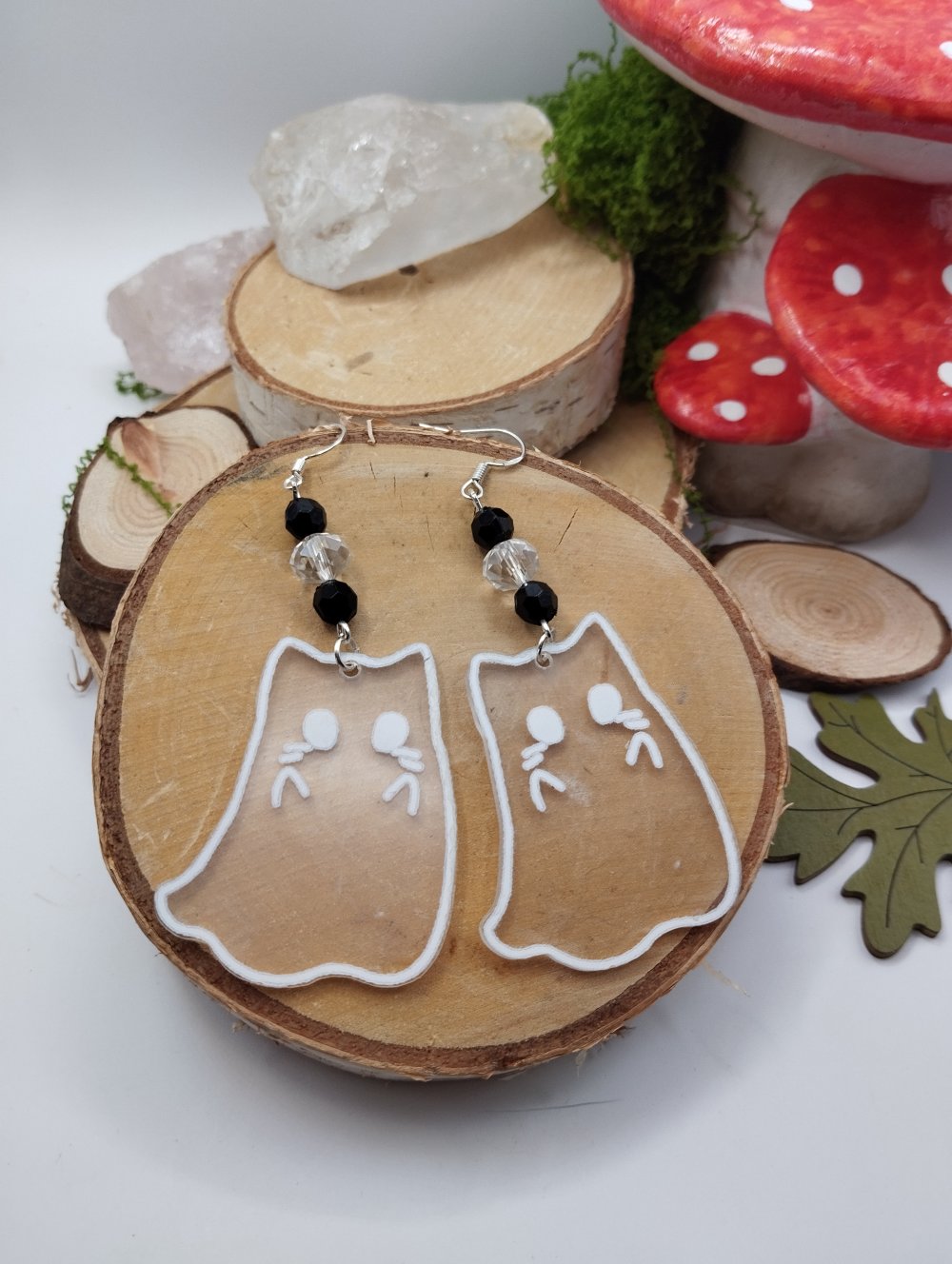 Ajoute une touche de fantaisie mystique à ton look avec ces boucles d’oreilles uniques représentant de drôles de petits chats transformés en fantômes !