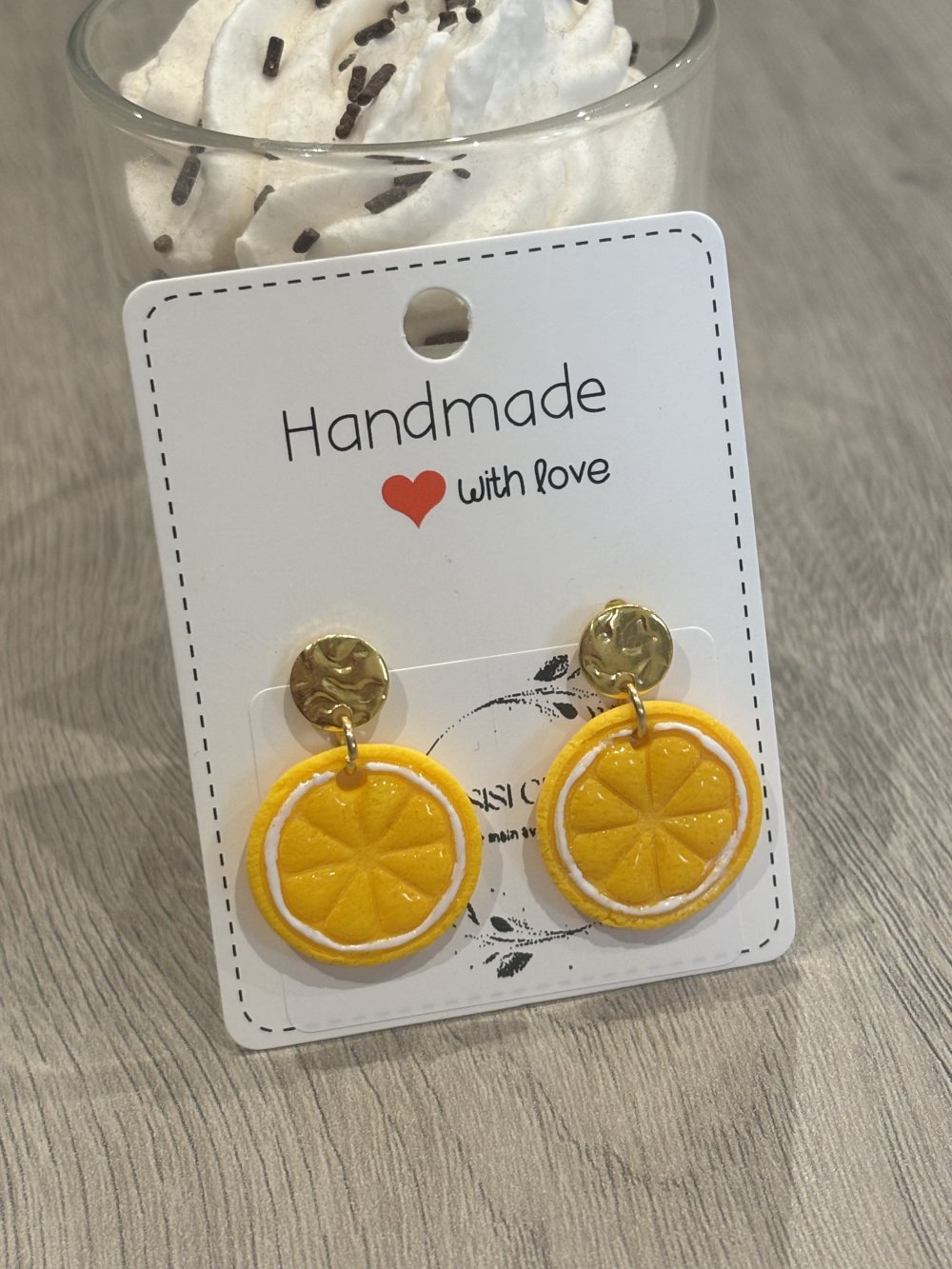 Boucles d’oreilles en pâte polymère acier inoxydable et finition brillante résine UV